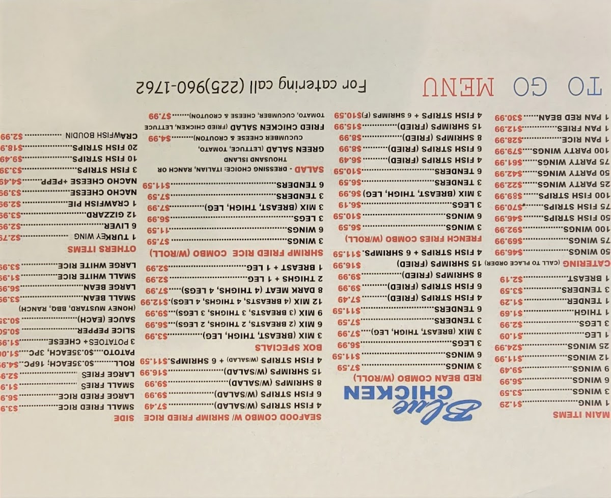 Welcome to Blue Store Chicken, a culinary gem located at 879 Staring Ln in Baton Rouge, Louisiana. This delightful eatery specializes in a variety of savory fried dishes that will leave your taste buds craving more. Their menu highlights include tantalizing French Fries Combos such as 4 Fish Strips & 6 Shrimps for just $12.39, and flavorful chicken options like Tender W FF for $8.88.
